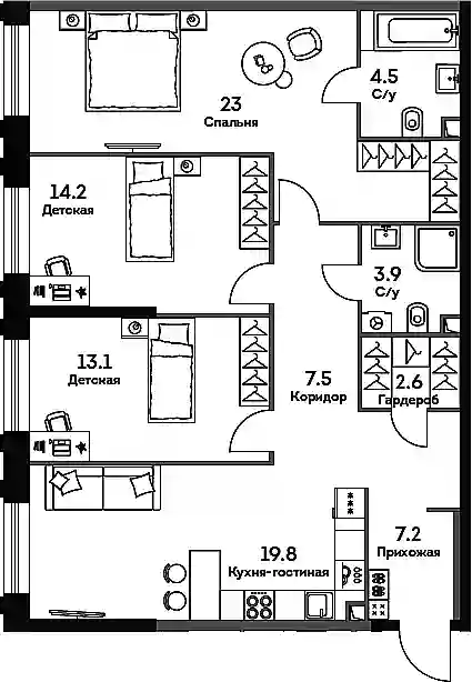 95.8 м2