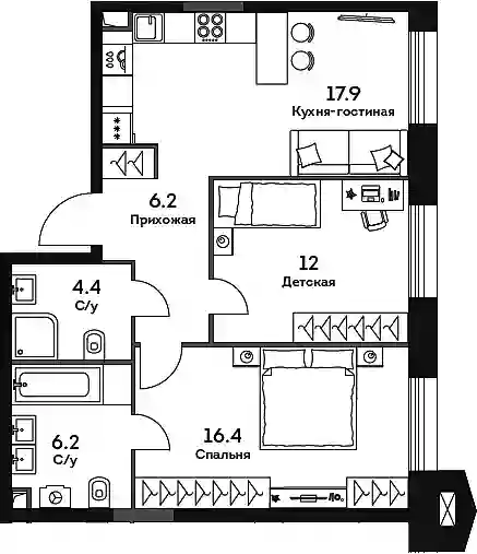 48 128 600 ₽2-к.квартира, 67.3 м², 14 эт.