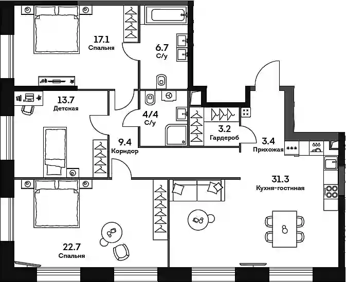 4-к.квартира, 111.9 м², 26 эт. в ЖК Era Корпус 3