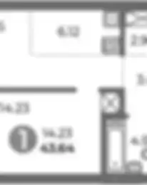 32 270 000 ₽1-к.квартира, 44.4 м², 12 эт.