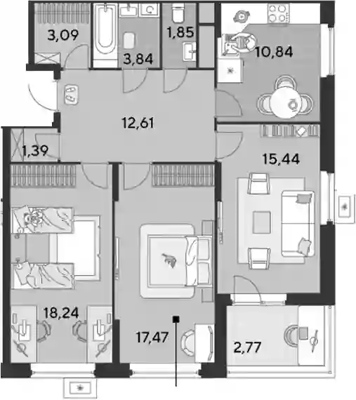 24 789 225 ₽3-к.квартира, 89.9 м², 18 эт.