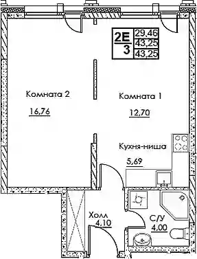 2-к.квартира, 43.25 м², 4 эт. в ЖК EVOPARK Измайлово Корпус 1