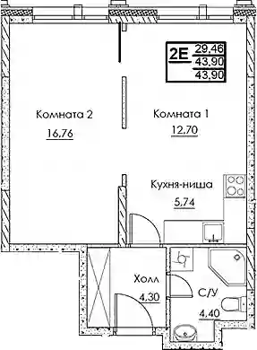 2-к.квартира, 43.9 м², 2 эт. в ЖК EVOPARK Измайлово Корпус 1