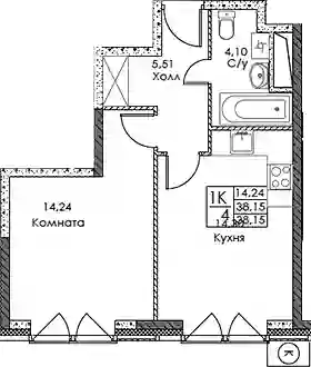1-к.квартира, 38.15 м², 8 эт. в ЖК EVOPARK Сокольники Корпус 1