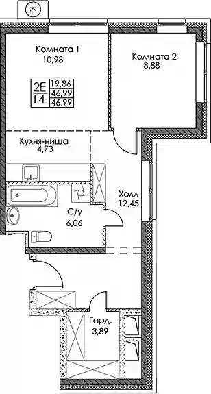 2-к.квартира, 46.99 м², 2 эт. в ЖК EVOPARK Сокольники Корпус 1