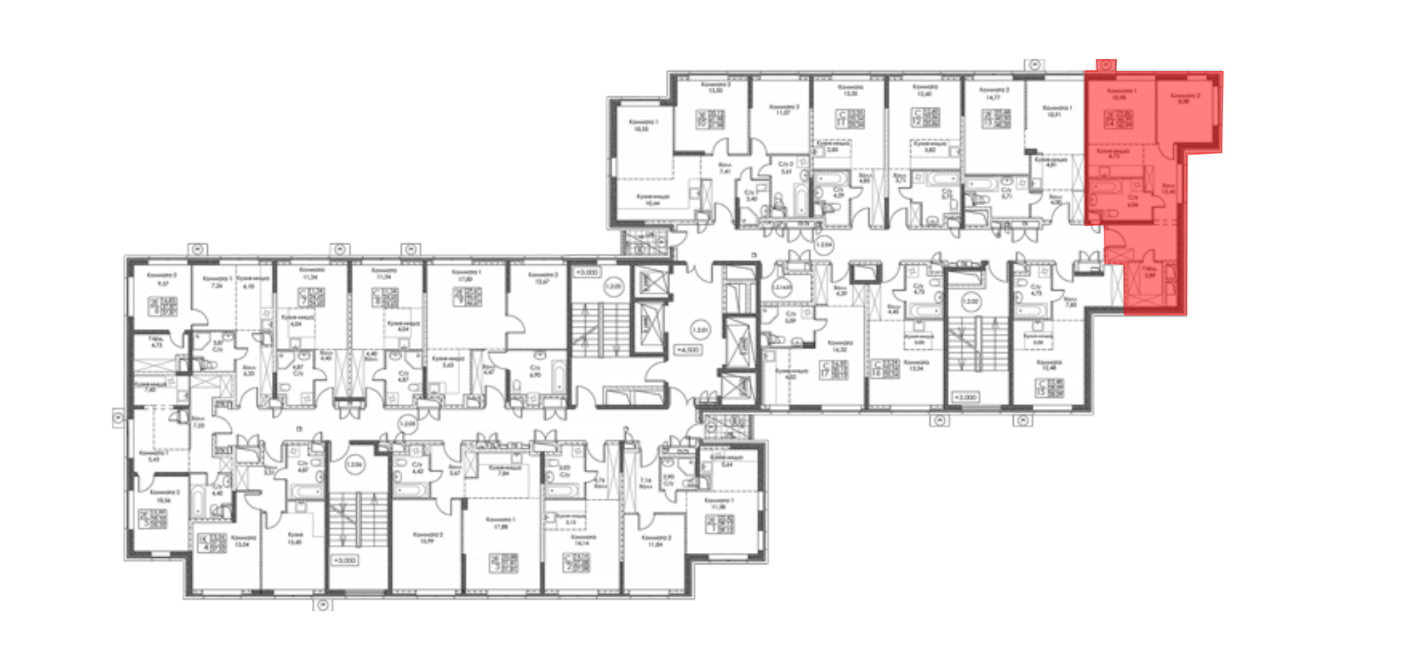 Комплекс предлагает широкий выбор апартаментов: от уютных студий площадью 23,8 кв. метров до 4-комнатных апартаментов. Также есть апартаменты с видовыми террасами на парк «Сокольники» на западной стороне дома. Квартиры, как классического типа, так и европланировки, сдаются без отделки, с высокими потолками 3,1 метров и панорамными окнами, начиная с 4 этажа и выше.