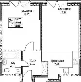 2-к.квартира, 50.03 м², 15 эт. в ЖК EVOPARK Сокольники Корпус 1