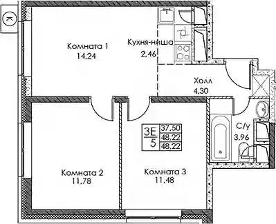 3-к.квартира, 48.22 м², 3 эт. в ЖК EVOPARK Сокольники Корпус 1