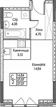 Студия, 27.07 м², 15 эт. в ЖК EVOPARK Сокольники Корпус 1