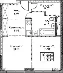 2-к.квартира, 41.89 м², 10 эт. в ЖК EVOPARK Сокольники Корпус 2