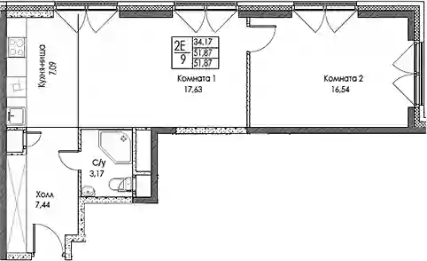 2-к.квартира, 51.87 м², 12 эт. в ЖК EVOPARK Сокольники Корпус 2