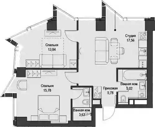 44 417 600 ₽2-к.квартира, 56.8 м², 8 эт.