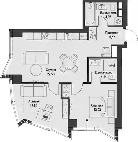 Квартиры в ЖК представлены классическими планировками от студий до трёхкомнатных. Есть возможность выбрать квартиру без отделки, с подчистовой и чистовой отделкой.