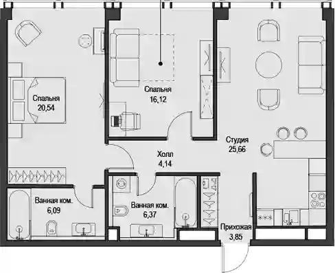 62 546 750 ₽4-к.квартира, 100.53 м², 43 эт.