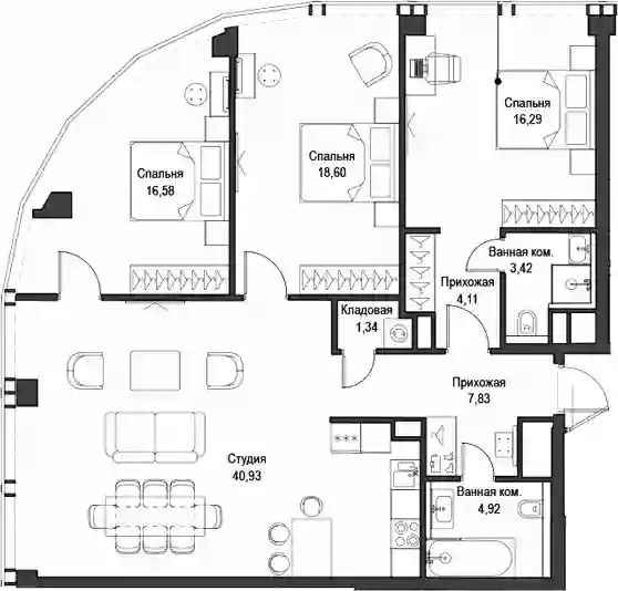 В комплексе предложено множество планировочных решений: в наличии квартиры, как классического типа, так и европланировки. Квартиры сдаются с подчистовой отделкой, высотой потолков 3 м и панорамным остеклением в пол.
