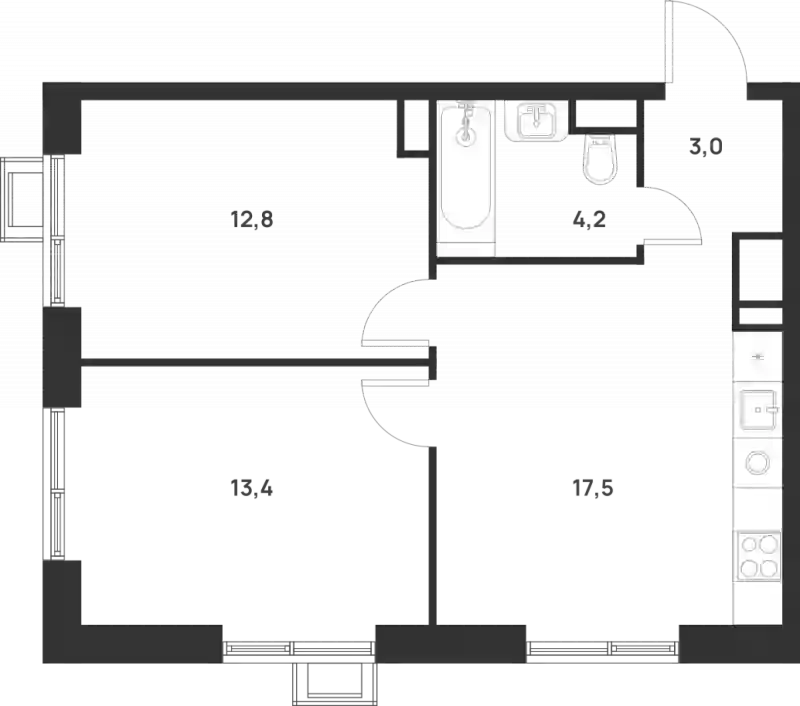 17 643 900 ₽2-к.квартира, 50.9 м², 2 эт.