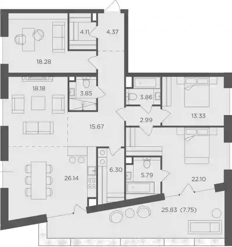 75 950 000 ₽3-к.квартира, 110.93 м², 14 эт.