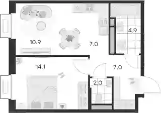 В проекте представлены студии и квартиры с 1–3 комнатами, включая варианты с патио на первом этаже. Высота потолков составляет 3,04 м. Все квартиры оснащены стандартными окнами, а в планировках с обычными или французскими балконами предусмотрены панорамные окна. Жилье передается без стен.