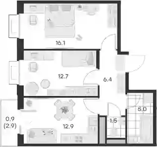 В проекте представлены студии и квартиры с 1–3 комнатами, включая варианты с патио на первом этаже. Высота потолков составляет 3,04 м. Все квартиры оснащены стандартными окнами, а в планировках с обычными или французскими балконами предусмотрены панорамные окна. Жилье передается без стен.