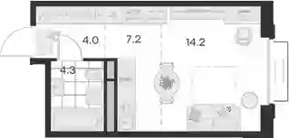 В проекте представлены студии и квартиры с 1–3 комнатами, включая варианты с патио на первом этаже. Высота потолков составляет 3,04 м. Все квартиры оснащены стандартными окнами, а в планировках с обычными или французскими балконами предусмотрены панорамные окна. Жилье передается без стен.