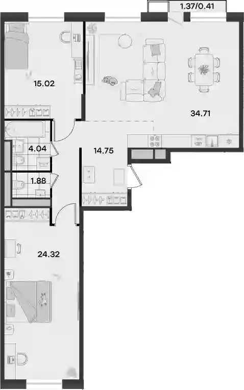 3-к.квартира, 94.72 м², 4 эт. в ЖК G3 Театральный Корпус 2