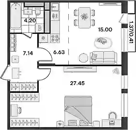 9 567 128 ₽1-к.квартира, 48.01 м², 4 эт.