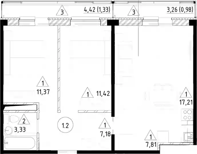 В жилом комплексе представлен широкий выбор планировочных решений: от студий до 3-х комнатных квартир. Также есть квартиры евроформата с кухней-гостиной и варианты с мастер-спальней. Высота потолков составляет 2,8 метра. Все квартиры сдаются без отделки, но есть возможность заказать как подчистовую, так и чистовую отделку.