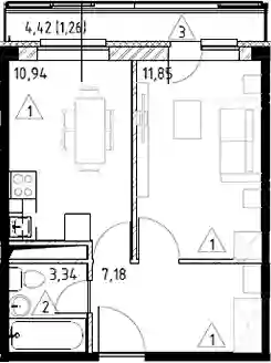 6 408 400 ₽1-к.квартира, 33.31 м², 1 эт.