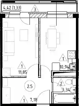 1-к.квартира, 33.31 м², 2 эт. в ЖК Горки Марусино Корпус 9