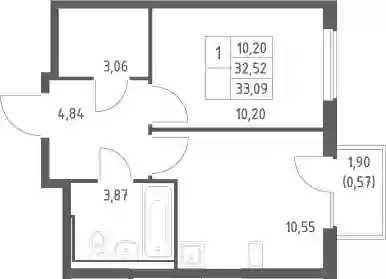 6 090 103 ₽2-к.квартира, 32.92 м², 7 эт.