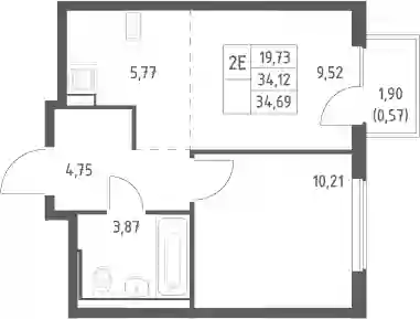 7 383 649 ₽2-к.квартира, 34.69 м², 7 эт.