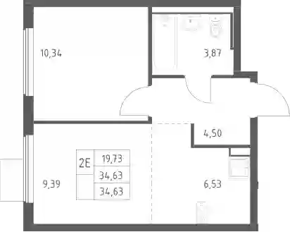 6 493 297 ₽2-к.квартира, 34.68 м², 9 эт.