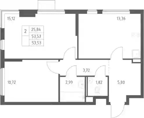 9 989 132 ₽2-к.квартира, 53.53 м², 3 эт.