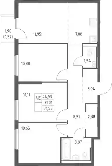 13 012 650 ₽4-к.квартира, 70.77 м², 7 эт.