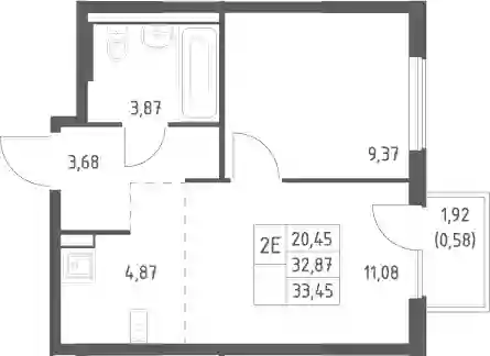 6 090 103 ₽2-к.квартира, 32.92 м², 7 эт.