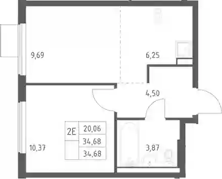6 513 515 ₽2-к.квартира, 34.66 м², 9 эт.