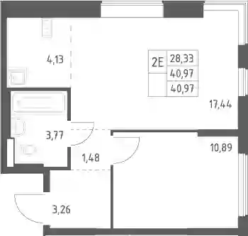 6 457 222 ₽2-к.квартира, 40.81 м², 17 эт.