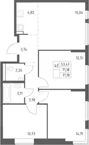 15 193 122 ₽4-к.квартира, 71.18 м², 16 эт.