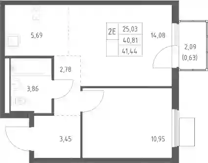 7 122 495 ₽2-к.квартира, 40.88 м², 3 эт.