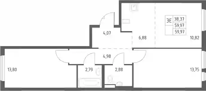 11 196 138 ₽2-к.квартира, 59.07 м², 3 эт.