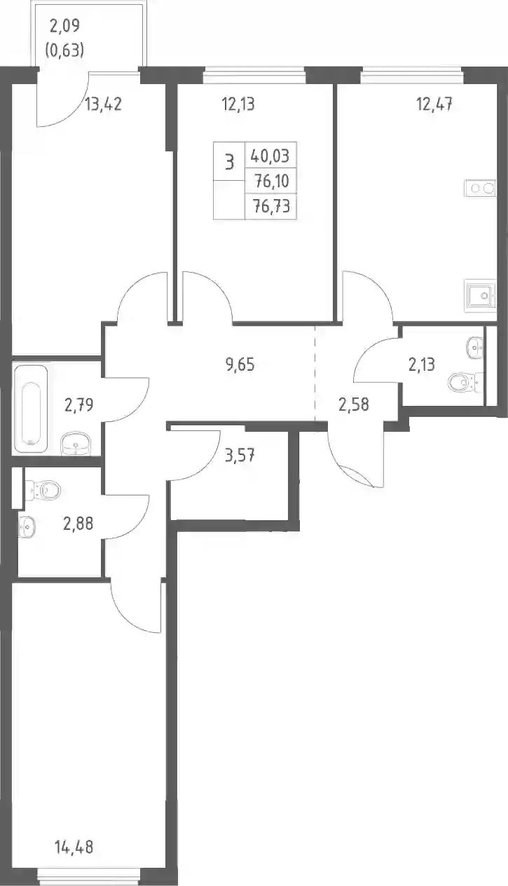 В проекте предусмотрено множество планировок — от студий до просторных 4х-комнатных квартир. Все лоты сдаются с чистовой отделкой, высотой потолков до 3,95 метров и панорамными окнами.