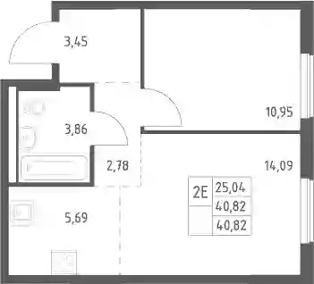 6 910 879 ₽2-к.квартира, 40.88 м², 14 эт.