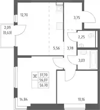 10 417 416 ₽2-к.квартира, 56.47 м², 3 эт.