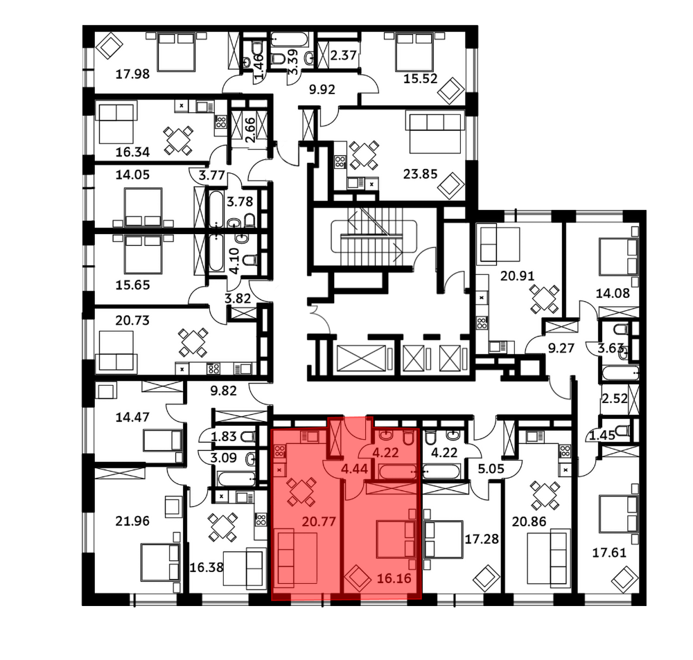15 885 864 ₽2-к.квартира, 44.71 м², 22 эт.
