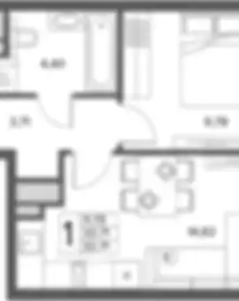 1 ₽1-к.квартира, 33.64 м², 2 эт.