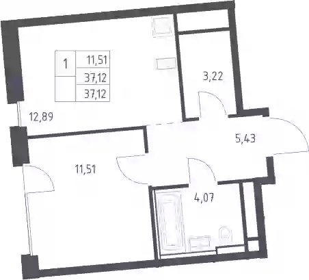1-к.квартира, 37.12 м², 2 эт. в ЖК Графика на воде Корпус 5