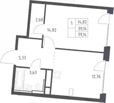 1-к.квартира, 39.14 м², 9 эт. в ЖК Графика на воде Корпус 5