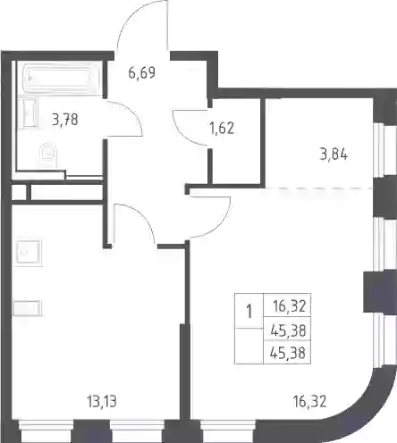 16 315 118 ₽2-к.квартира, 38.39 м², 16 эт.