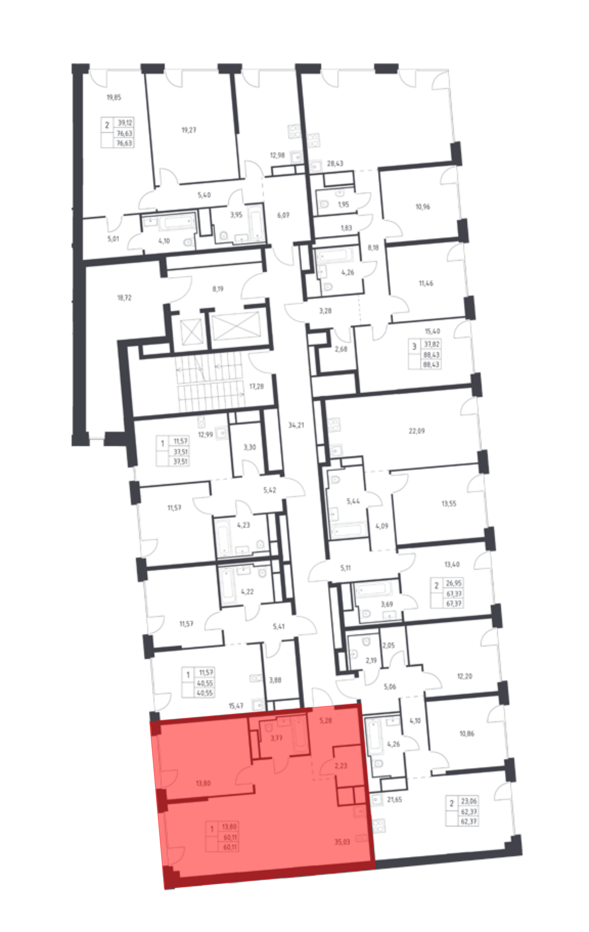 24 600 013 ₽3-к.квартира, 62.59 м², 11 эт.