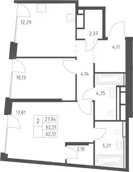 2-к.квартира, 62.51 м², 4 эт. в ЖК Графика на воде Корпус 5